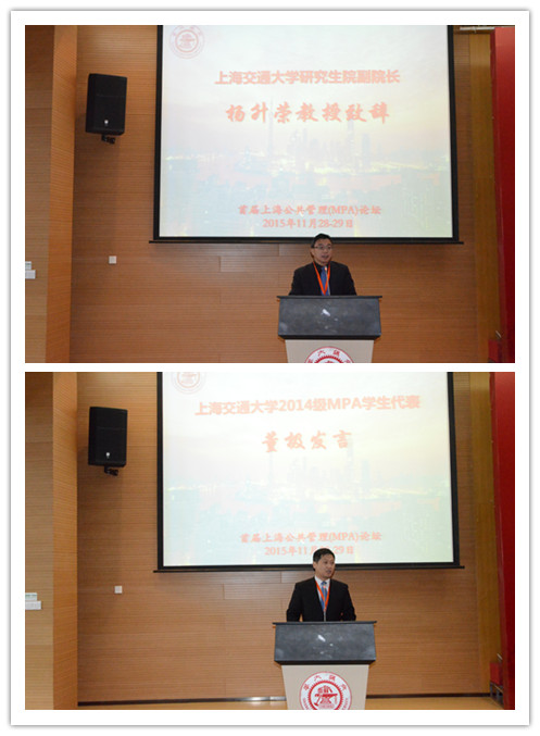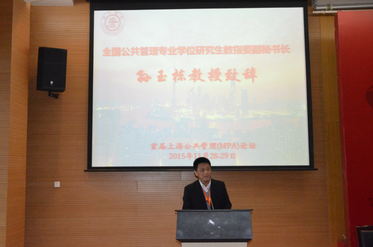 杨升荣教授代表上海交通大学研究生院作开幕致辞,他提到,此次论坛为我们上海专业学位教育提供了一个难得的学习和交流平台,也为推动公共管理专业学位教学和研究工作的发展具有重要的现实意义。